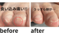 しかし、注意するところは、爪が白癬でおかされていると爪が薄く、その下に角質増殖が見られる分厚くみえている場合があるため、必ず確認して表面を削る必要があります。
