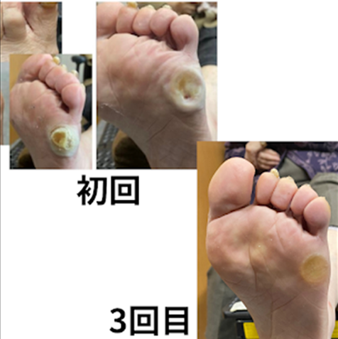 まずは、自分の足のことを理解していただき、痛みの軽減を目的にタコを削らせていただきました。