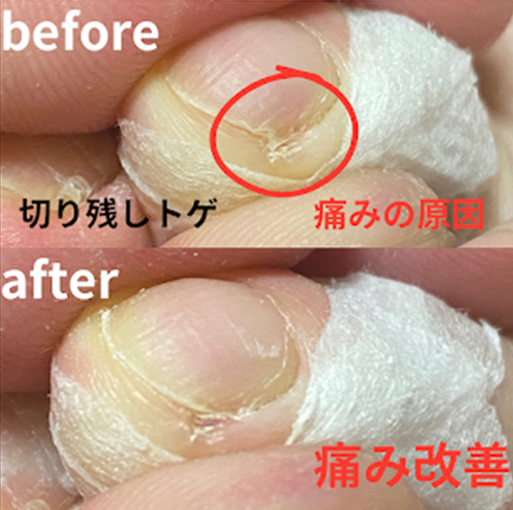 よく見てみると爪の切り残しがあり、それが棘のように皮膚を圧迫しているようでした。