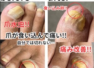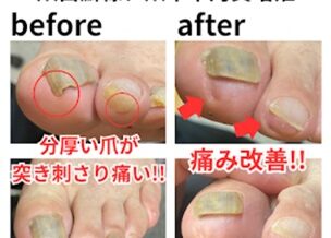フットケア 爪甲鉤彎症 爪甲鉤彎症のお客様のお話です。 爪母(爪の根元、爪を創る源)の異常により爪が分厚く硬く、異方向に爪が成長してしまいます。 画像のように親指の爪が伸びたままで放っておくと他の指を傷つけてしまう場合があり... 2025.10.13 フットケアブログ